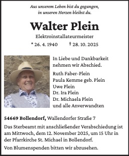 Wir werden Walter ein ehrendes Andenken bewahren.